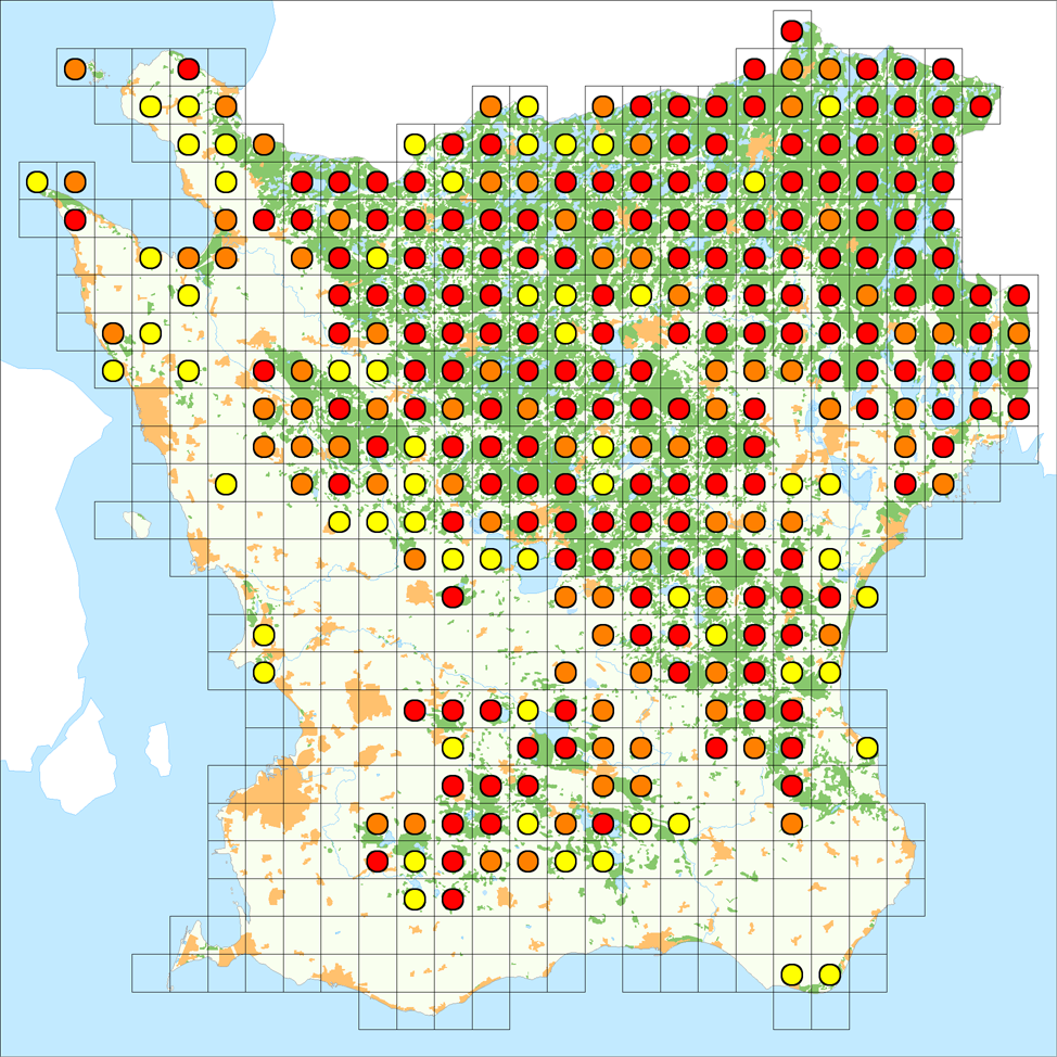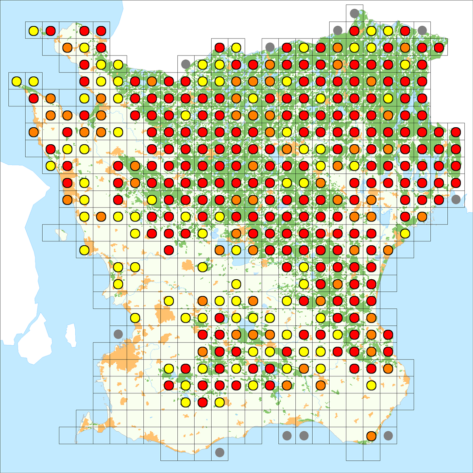 Figur 2. Resultatet av den andra atlasinventeringen av nötskrika 2003-2009.