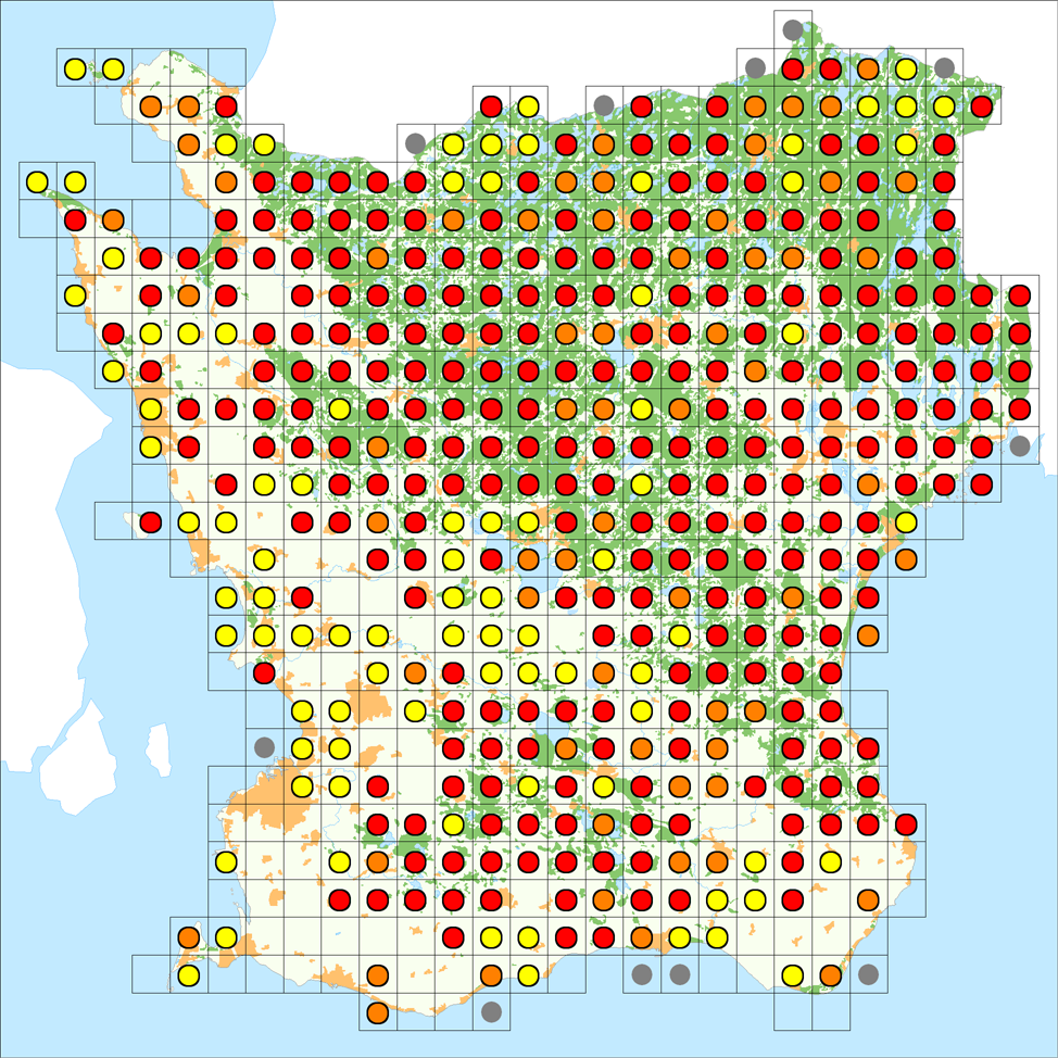 Figur 2. Resultatet av den andra atlasinventeringen av ormvråk 2003-2009.